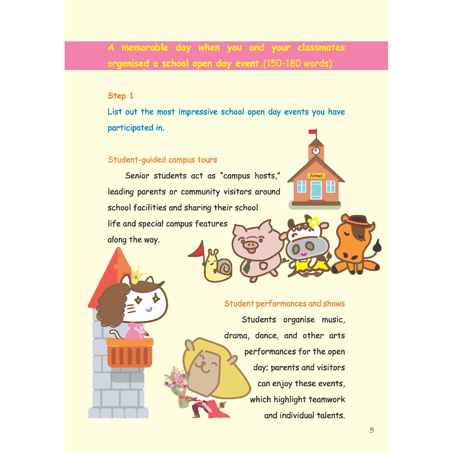 全書以「Step-by-Step」結構,從構思、組織到表達,引導學生學會觀點陳述與情感書寫。