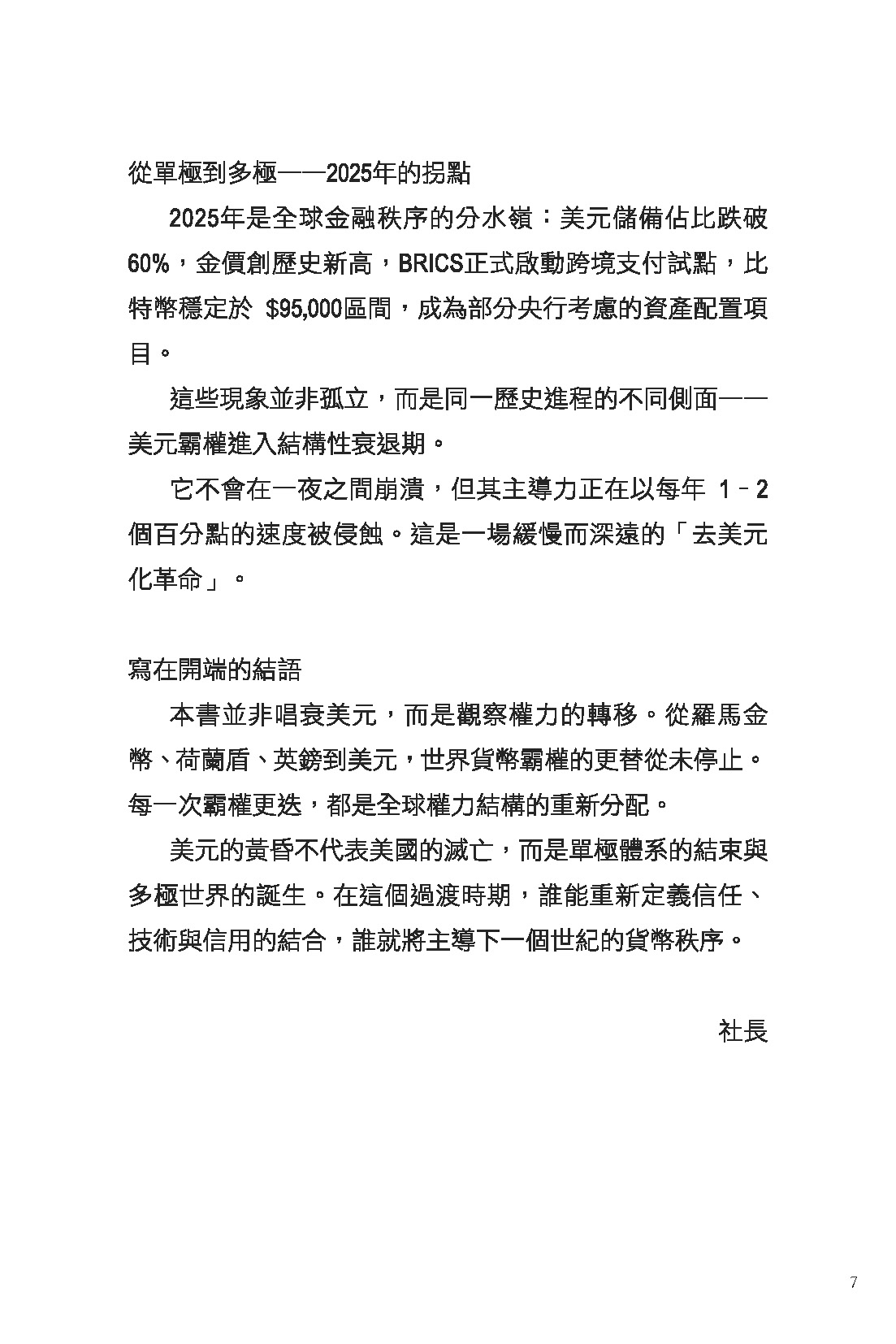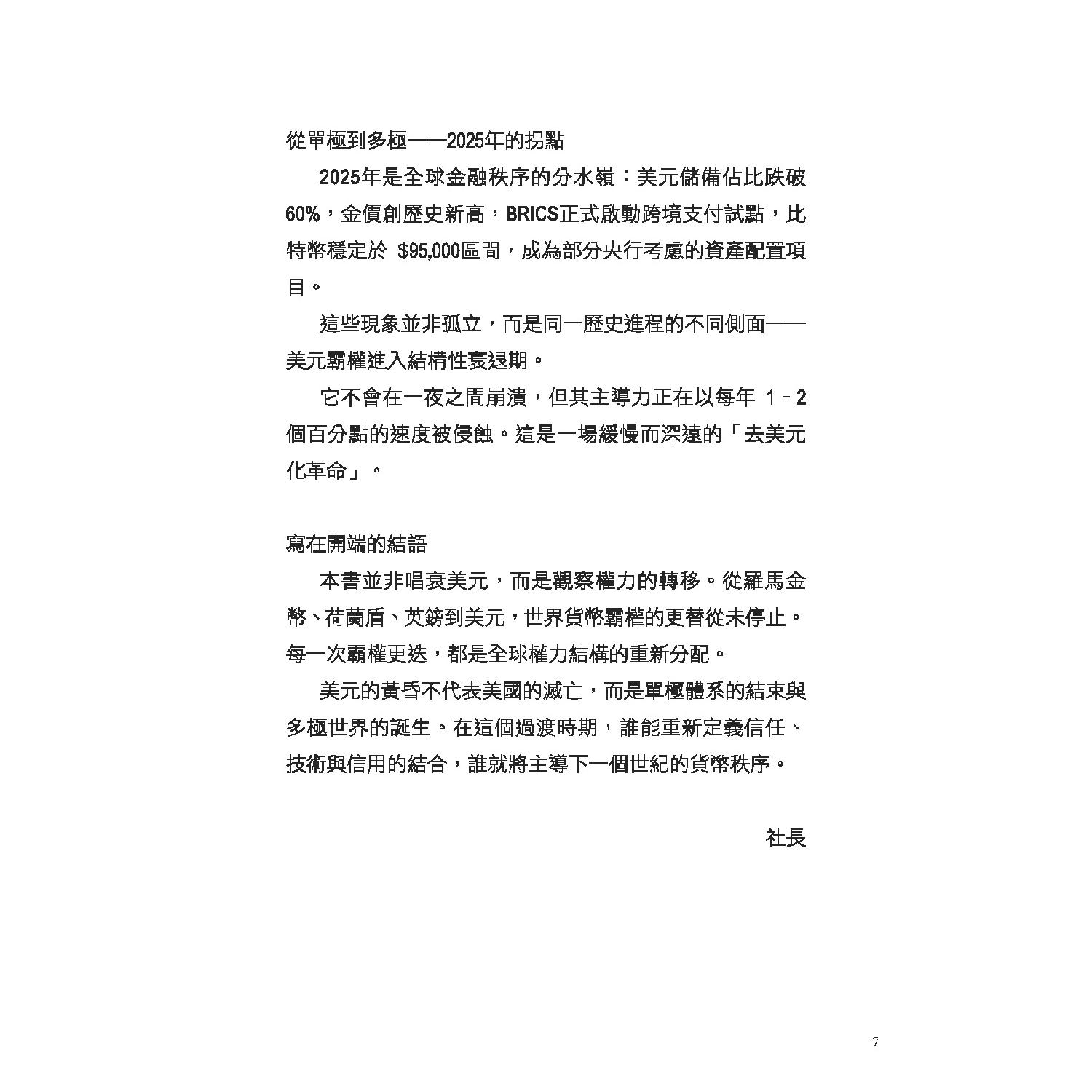 自布雷頓森林體系解體以來,美元憑藉軍事、能源與金融規則主導世界超過七十年。然而,俄烏戰爭引爆金融制裁、SWIFT 成為武器、各國央行瘋狂囤金、BRICS 結算轉向本幣……世界正快速走向「去美元化」的新紀元。